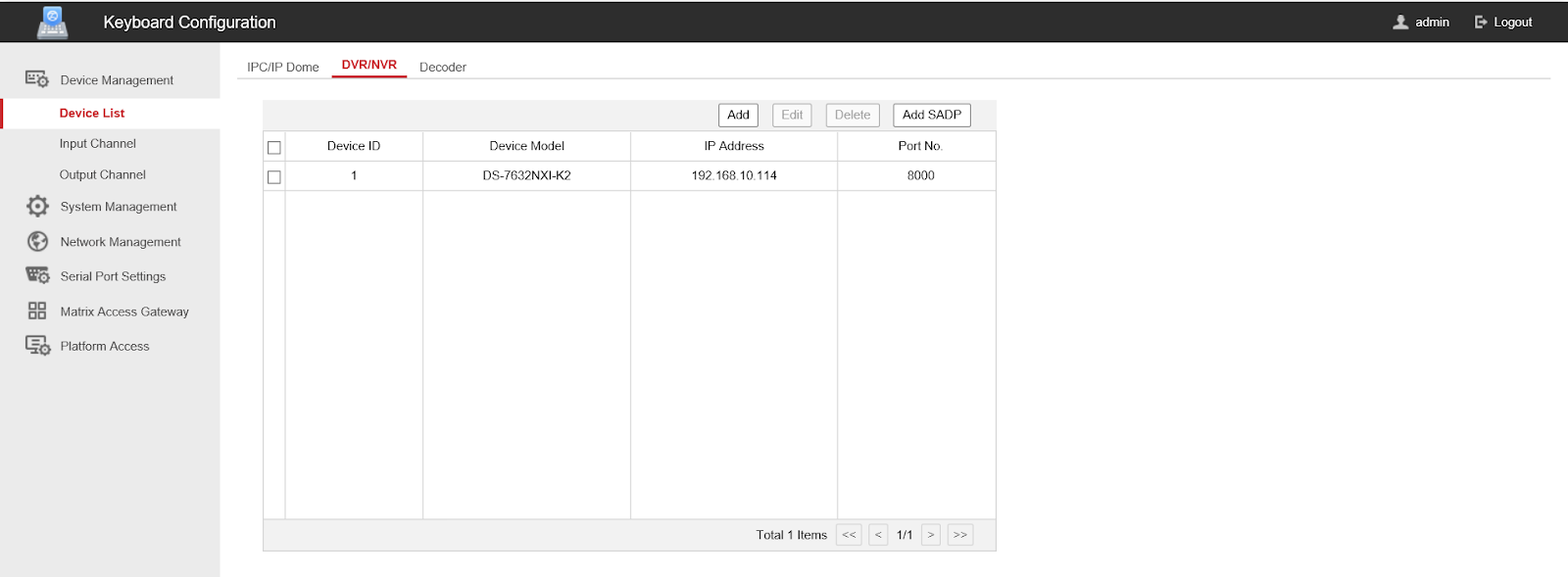 На Web-інтерфейсі в пункті “Device List” -> “DVR/NVR” є можливість ручного додавання та пошуку пристроїв в мережі.