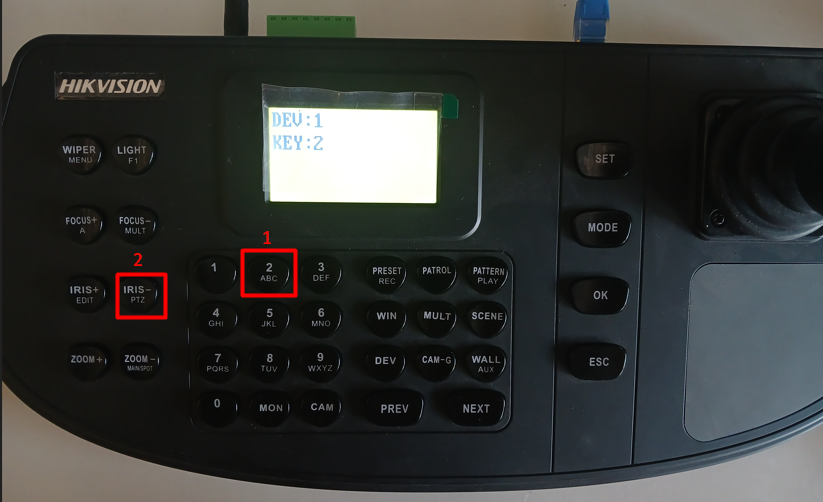 Далі в Key прописуємо канал на якому знаходиться PTZ камера (в нашому випадку 2-ий канал) у Вас одразу увімкнеться даний канал на реєстраторі на весь екран та після цього натискаємо Iris – (PTZ)